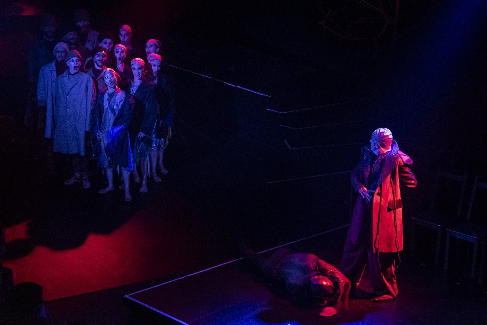 Une dramaturgie du corps, dansée et musicale, propre au T.E.C. puise dans des références majeures de l’art théâtral pour un spectacle étourdissant mais rigoureux, infiniment généreux de sensations. Cosmopolite, immersive, contemporaine, cette création d’Elizabeth Czerczuk nous saisit autrement qu’une suite de répliques en langue française.